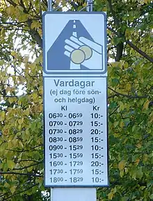 - "Betalning av trängselskatt" (in Swedish). Swedish Road Administration. 2008-07-16. Archived from the original on July 30, 2008. Retrieved 2008-08-03.
