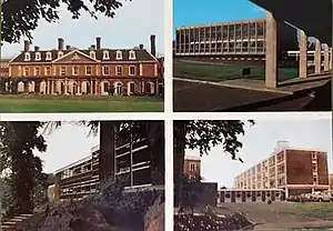 On the return to Bromley in 1945, some buildings had been destroyed by bombs, public air raid shelters had been built on the site, high blast walls had been constructed that obscured some windows, the grounds had been let out to allotments, and the fabric of the Old Palace itself had been badly damaged. Over the following years some redevelopment and improvement of the site took place, and some temporary accommodation was found in Wanstead Road, a mile away from the site. The post-war building programme included:[1]