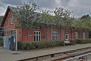 Stoholm station is located on the Langå-Struer Line from Langå to Struer. The station was opened in 1864 with the opening of the Viborg-Skive section of the Langå-Struer Line.[3] It offers direct InterCity services to Copenhagen and Struer as well as regional train services to Aarhus and Struer. The train services are operated by Arriva and DSB.