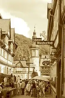 Nevertheless, the consistory continued to have regional responsibility for the Lutheran church parishes in the former county. Until the separation of church and state in 1919 it was directly subordinate to the imperial lord (Standesherr), the Count or Prince of Stolberg-Stolberg and indirectly to the governor (Oberpräsident) of the Province of Saxony.[1] At the end of 1944 the Evangelical High Consistory (Evangelischer Oberkirchenrat) (the headquarters of the state church) moved its seat from the endangered city of Berlin to the consistorial building at Stolberg.