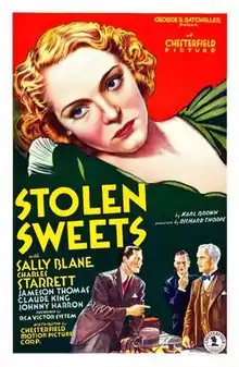 Stolen Sweets is a 1934 American comedy film directed by Richard Thorpe and written by Karl Brown. The film stars Sally Blane, Charles Starrett, Jameson Thomas, Claude King, John Harron and Polly Ann Young. The film was released on March 15, 1934, by Chesterfield Pictures.[1][2][3]