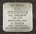 HERE LIVED ILSA STEINSBERGOVÁ NÉE GESSLEROVÁ BORN 1918 DEPORTED 1942 TO THERESIENSTADT 1944 TO AUSCHWITZ LIBERATED IN THERESIENSTADT |