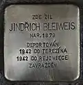 HERE LIVED JINDŘICH BLEIWEIS BORN 1879 DEPORTED 1942 TO THERESIENSTADT 1942 TO REJOWIEC MURDERED |