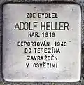 HERE LIVED ADOLF HELLER BORN 1919 DEPORTED 1943 TO THERESIENSTADT MURDERED IN AUSCHWITZ |