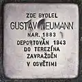 HERE LIVED GUSTAV NEUMANN BORN 1883 DEPORTED 1943 TO THERESIENSTADT MURDERED IN AUSCHWITZ |