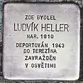 HERE LIVED LUDVÍK HELLER BORN 1910 DEPORTED 1943 TO THERESIENSTADT MURDERED IN AUSCHWITZ |