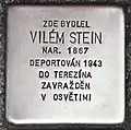 HERE LIVED VILÉM STEIN BORN 1867 DEPORTED 1943 TO THERESIENSTADT MURDERED IN AUSCHWITZ |