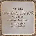 HERE LIVED FRANTIŠKA LÖWYOVÁ BORN 1865 DEPORTED 1942 TO THERESIENSTADT MURDERED |