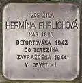 HERE LIVED JINDŘIŠKA ADLEROVÁ BORN 1910 DEPORTED 1942 TO THERESIENSTADT TO AUSCHWITZ 1943 MURDERED |