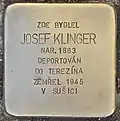 Josef Löwy was born on 5 March 1864. His parent were Leopold Löwy und Anna née Adler. He had six siblings: Jakob (born 1865), Simon (born 1873), Karoline (born 1880, later named Drill), Louis, Moritz and Therese. He married Františka née Sonnenschein. The couple had four children: Ludwig (born 1897), Amalia (born 1908), Louise and Ottilie. Josef Löwyá and his wife were deported from Klatovy to Theresienstadt concentration camp by transport Cd. His transport number was 68 of 651. There, husband and wife were both murdered by the Nazi regime, Josef Löwy on 1 March 1943 and Františka Löwyová on 11 November 1944.[53][54]