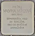 HERE LIVED MARKETA LÖWYOVÁ BORN 1903 DEPORTED 1942 TO THERESIENSTADT 1944 TO AUSCHWITZ MURDERED 4 October 1944 |