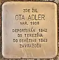 HERE LIVED OTA ADLER BORN 1908 DEPORTED 1942 TO THERESIENSTADT TO AUSCHWITZ 1943 MURDERED |
