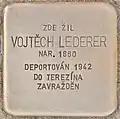 HERE LIVED VOJTĚCH LEDERER BORN 1860 DEPORTED 1942 TO THERESIENSTADT MURDERED |