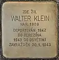 HERE LIVED WALTER KLEIN Born 1909 DEPORTED 1942 TO THERESIENSTADT 1943 TO AUSCHWITZ MURDERED 20 January 1943 |