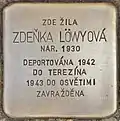 HERE LIVED ZDEŇKA LÖWYOVÁ BORN 1930 DEPORTED 1942 TO THERESIENSTADT 1943 TO AUSCHWITZ MURDERED |