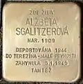 HERE LIVED ALBTA SGALITZEROVÁ BORN 1909 DEPORTED 1942 TO THERESIENSTADT-KLEINE FESTUNG DIED 5.1.1945 EBENDORT |