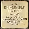 HERE LIVED DR. ING. BEDŘICH SGALITZER BORN 1886 DEPORTED 1942 TO THERESIENSTADT-KLEINE FESTUNG MURDERED 1944 EBENDORT |