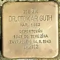 HERE LIVED DR. OTOKAR GUTH BORN 1882 DEPORTED 1943 TO THERESIENSTADT MURDERED 14.8.1943 EBENDORT |