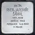 HERE LIVED DR. RER. NAT. JAROMÍR ŠÁMAL BORN 1900 IMPRISONED 1942 EXECUTED 5.6.1942 IN PRAG |