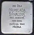 HERE LIVED DR. MILADA ŠÁMALOVÁ BORN 1906 IMPRISONED 1942 SURVIVED |