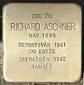 HERE LIVED RICHARD ASCHNER BORN 1886 DEPORTED 1941 TO ŁÓDŹ MURDERED 1942 EBENDORT |
