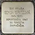 HERE LIVED SONJA SPITZOVÁ BORN 1902 DEPORTED 1941 TO THERESIENSTADT MURDERED |