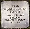 HERE LIVED WILHELM HALPERN BORN 1890 DEPORTED 1940 TO DACHAU MURDERED 27.1.1942 IN DACHAU |