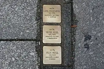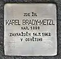HERE LIVED KAREL BRADY-METZL BORN 1898 MURDERED 14.7.1942 IN AUSCHWITZ |