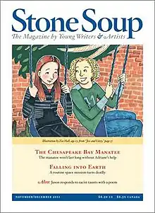 Stone Soup is a literary magazine for children that publishes writing and art created by children from all over the world.[1] The magazine was founded in 1972 by college students at Porter College at the University of California, Santa Cruz, and the first issue of the magazine was published in May 1973. Their purpose was to “encourage youngsters to use writing as a way to talk about their lives.”[2] The founder, William Rubel, continues to run the publication today along with Editor Emma Wood and other colleagues from their offices in Santa Cruz, California.[3] Booklist described Stone Soup’s editorial philosophy as, “Children can meet the highest standard of literature and art.”[4][5]