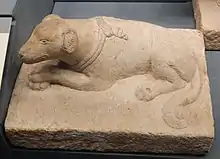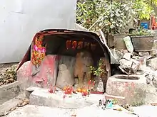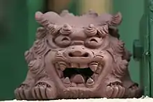 The Leizhou stone dogs are historical canine sculptures from the Leizhou Peninsula. They blend the locally-held tradition of totem worship with different ethnic cultures.[1] In the past, the Leizhou Peninsula was an inhospitable land with relatively few inhabitants. Due the difficulty of bearing and raising children while living in such harsh conditions, the original inhabitants worshipped dogs, which could easily give birth to their offspring.[1] Numerous stone dogs are widely distributed at village entrances, roads, and gates. The Stone Dogs are an important part of the local cultural history, and have many meanings and shapes. They are roughly carved, and have turned grayish from long term exposure to the elements. They are considered a highlight of the peninsula's culture.