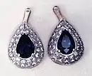 A faceted shape resembles that of the modern diamond. It has a flat, polished surface, typically with a transparent surface that refracts light inside the gemstone and reflects light on the outside.[5] In the case of a cabochon stone, the side of the stone is usually cut at a shallow angle, so that when the bezel is pushed over the stone, the angle permits it to hold the stone tightly in place. In the case of faceted stones, a shallow groove is cut into the side of the bezel into which the girdle of the stone is placed, with metal prongs then pushed over the face of the stone, holding it in place; cabochons may also be set into prong settings. In both cases, the pressure and the angle of the prongs holds the stone in place.