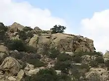 Stoney Point, also known as the Stoney Point Outcroppings or Chatsworth Formation,[2] is a Los Angeles City park near the north end of Topanga Canyon Boulevard (State Route 27) in Chatsworth, Los Angeles, California, part of the city of Los Angeles. Stoney Point is a popular destination for hikers, equestrians and also with rock climbers because of its large boulders, which afford many opportunities to practice the sport of bouldering. The top of the rock formation offers excellent views of Chatsworth, the Santa Susana Mountains, Coyote Pass, and the entire San Fernando Valley.