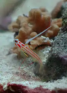 Stonogobiops yasha, the Orange-striped shrimpgoby, is a species of goby native to the Western Pacific Ocean where it occurs at depths of from 15 to 40 metres (49 to 131 ft). It inhabits sandy areas along the outer slopes of reefs where it lives in a commensal relationship with the shrimp Alpheus randalli. This species can reach a length of 4.7 centimetres (1.9 in) SL.[1]