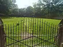 The cemetery is enclosed on three sides by a stone wall and adjoins the meeting house and First Day School (the Quaker expression for "Sunday School"). It was the earliest and most prominent burial ground in Princeton before the Revolutionary War.[6] Friends traditionally expressed their commitments to simplicity and the equality of all persons by discouraging elaborate grave markers. While some graves in the cemetery are marked by plain stones that bear the name and dates of birth and death, many others are unmarked. Historical tradition of Quakers at the time was to place a simple unmarked stone marker at each grave site. Richard Ridgway (one of the founders of the Meeting Hall) is one of the prominent burials, but which marker is unknown.