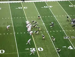 Stony Brook first fielded varsity football in the 1983 season when its athletic teams were known as the Patriots.[6] The football team transitioned into Division I in 1999 after leaving the Eastern Football Conference. In 2002, the 8,300 seat Kenneth P. LaValle Stadium opened as the new home of Seawolves football.[7] The program joined the Northeast Conference in 1999 and participated as an associate member until 2006. It transitioned to a fully funded FCS program from 2006 until 2008 providing the maximum scholarship allowance of 63. In 2008 Stony Brook joined the Big South Conference.[8] In the summer of 2012, the program announced its admission into the Colonial Athletic Association. In 2017, the stadium was expanded to add further 2,000 seats, which along with a standing capacity of at least 2,000, gives the stadium a total capacity of 12,300.[9]