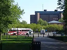 The East Campus is separated from the main campus by Nicolls Road (County Road 97). It is home to the Stony Brook University Hospital and the Health Sciences Center. Stony Brook University Hospital, completed in 1980, is Suffolk County's only tertiary hospital and Level 1 Trauma Center, and the only academic medical center in Suffolk County—larger also than any in Nassau County.[64] The hospital is the largest in Suffolk County, and the attached Health Sciences Center (HSC) and Basic Science Tower (BST) houses numerous laboratories, the School of Medicine (1972), the School of Nursing (1970), the School of Health Professions (1970) and the School of Social Welfare (1971). The area also includes the Ambulatory Surgery Center and the Center for Outpatient Services.[65]