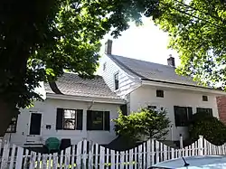 The original section was built in 1747 and the larger main portion dates to 1811. A kitchen wing was added in 1880. It is one and one half stories with steeply pitched gable roofs, curved projecting eaves, and end chimneys. The main entrance features a Dutch door.[3] It was relocated in approximately 1900 to align with the new street grid.[4]