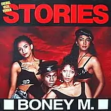 "Stories" is a 1990 single by German band Boney M. It peaked at #26 in Switzerland and #94 in the UK. The single was based on an instrumental 1989 underground favourite by Izit, which itself was a re-work of a 1972 recording by Belgian group Chakachas. With added lyrics by Peter Bischof-Fallenstein, "Stories" was released as a response to the withdrawn "Everybody Wants to Dance Like Josephine Baker", released illegally under the group name by original members Marcia Barrett, Bobby Farrell, Maizie Williams and new singer Madeleine Davis. "Stories" launched a short-lived 'official' Boney M. line-up consisting of original lead singer Liz Mitchell and Reggie Tsiboe (who had replaced Farrell 1982-86) and two new girls, Sharon Steven and Patty Onoyewenjo. Never appearing on any studio album by the group, Stories was added as a bonus track on the remastered 2007 edition of the group's 1977 album Love for Sale. An unreleased 3:54 mix was used in the video clip for the track.[1]