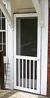 A storm door is a type of door that is installed in front of an exterior access door to protect it from bad weather and allow ventilation. Storm doors generally have interchangeable glass panels and window screen panels to provide visibility and prevent flying insects from entering the home.