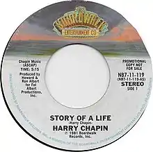 "Story of a Life" is a song written and performed by Harry Chapin, from the album Sequel. The song is the final single released from the album, and Chapin's final single before his death in July 1981. When released, it became a hit on the Billboard Bubbling Under Hot 100. Peaking at 105, it stayed on the chart for five weeks making all three singles from the album hits. It has been included on numerous anthology releases.