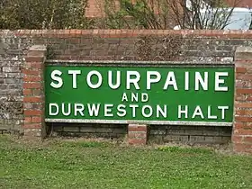 Stourpaine & Durweston Halt was a station in the English county of Dorset. It was located between Shillingstone and Blandford Forum on the Somerset and Dorset Joint Railway. The station consisted of a small concrete platform and shelter.
