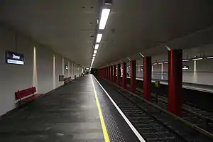 Stovner is a subway station on Grorudbanen (Line 5) on the Oslo Metro, between Rommen and the end station Vestli, it was opened in 1974. The station is underground, at the entry of the tunnel. At or above the station is the large Stovner shopping centre, the Stovner police station, and a small bus terminal. Stovner is mainly a residential area.