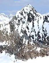 The Strahlkogel, at 3,288 m (AA), is the highest peak in the Larstiger Mountains (Larstiger Berge), a subgroup of the Stubai Alps in the Austrian state of Tyrol. The Strahlkogel is also the highest mountain in the municipality of Umhausen. Its name comes from its great, white, light-reflecting, quartz layers, which allegedly cause the mountain to "radiate" (strahlen). It has the shape of a well-proportioned, steep and pointed pyramid. Ascending the Strahlkogel is difficult and it is thus only rarely visited, unlike the neighbouring 3,287-metre-high Breiter Grieskogel. The first ascent of the mountain was in 1833 by Peter Carl Thurwieser, but his route and the precise circumstances of the climb have not been passed on. On 28 August 1887 Ludwig Purtscheller and Fritz Drasch from Salzburg climbed the mountain. Their route led along the west arête. Today, this is the normal route and easiest way to reach the summit.