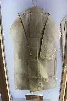 A straitjacket is a garment shaped like a jacket with long sleeves that surpass the tips of the wearer's fingers. Its most typical use is restraining people who may cause harm to themselves or others. Once the wearer slides their arms into the sleeves, the person restraining the wearer crosses the sleeves against the chest and ties the ends of the sleeves to the back of the jacket, ensuring the arms are close to the chest with as little movement as possible.