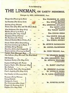 These "new burlesques" included Little Jack Sheppard (1885), Monte Cristo Jr. (1886), Miss Esmeralda (1887), Faust up to Date (1888), Ruy Blas and the Blasé Roué (1888), Carmen up to Data (1890), Joan of Arc by Adrian Ross and J. L. Shine (1891) and Cinder Ellen up too Late (1891).[13] John D'Auban acted as the theatre's ballet-master and choreographed the Gaiety burlesques and other pieces from 1868 to 1891.[14][15] Comedian E. J. Lonnen joined the Gaiety for many of Lutz's burlesques. After these, however, the age of burlesque was coming to an end, and with the retirement of Nellie Farren and Fred Leslie, it was essentially over.