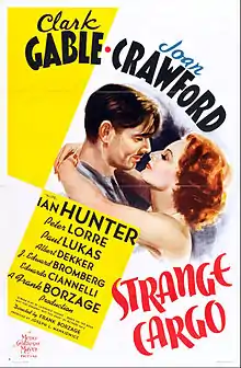 Strange Cargo is a 1940 American romantic drama film directed by Frank Borzage and starring Clark Gable and Joan Crawford in a story about a group of fugitive prisoners from a French penal colony. The adapted screenplay by Lawrence Hazard was based upon the 1936 novel, Not Too Narrow, Not Too Deep, by Richard Sale. The film was produced by Joseph L. Mankiewicz for Metro-Goldwyn-Mayer; it was the eighth and last film pairing of Crawford and Gable, and the first Gable picture released in the wake of Gone with the Wind. The supporting cast includes Ian Hunter and Peter Lorre.