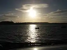 Strangford Lough (from Old Norse Strangr Fjörðr, meaning "strong sea-inlet"[1]) is a large sea lough or inlet in County Down, in the east of Northern Ireland. It is the largest inlet in Ireland and the wider British Isles, covering 150 km2 (58 sq mi). The lough is almost fully enclosed by the Ards Peninsula and is linked to the Irish Sea by a long narrow channel at its southeastern edge. The main body of the lough has at least seventy islands along with many islets (pladdies), bays, coves, headlands and mudflats. Historically it was called 'Lough Coan' (Irish Loch Cuan, "sea-inlet of bays/havens"), while 'Strangford' referred to the narrow sea channel.[1] It is part of the 'Strangford and Lecale' Area of Outstanding Natural Beauty. Strangford Lough was designated as Northern Ireland's first Marine Conservation Zone in 2013, and has been designated a Special Area of Conservation for its important wildlife.