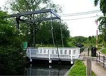 270 yards (250 m) further south is the electrically operated Shirley Draw Bridge which carries Drawbridge Road over the canal. It is normally closed and can be opened using a British Waterways key. The northern section also has a swing bridge (no.2, normally left open), a lift bridge (no.28), and another drawbridge (no. 26), all operated manually.