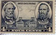 Stratford Hall was depicted on a 4¢ United States postage stamp of the 1936–1937 Army-Navy issue. The stamp shows General Robert E. Lee and "Stonewall" Jackson, with Stratford Hall in the center.