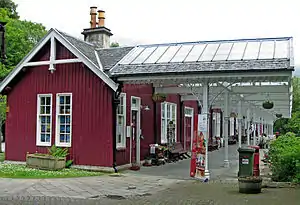 The old railway station building currently performs an important role in the town's tourist trade and cultural activities. It houses the Highland Museum of Childhood, several retail shops and a cafe. When it opened in 1992, this became the fourth museum of childhood in Britain.[22]: 156 Initially, the museum was based on the doll and toy collection of former Strathpeffer resident, Mrs Angela Kellie but subsequently expanded to tell the story of childhood in the Scottish Highlands. It rented space in Strathpeffer's restored Victorian railway station building and by 2007 had an average of 8,500 visitors a year.[23] In 2009 a board of trustees purchased the station building from Highland Council.[24]